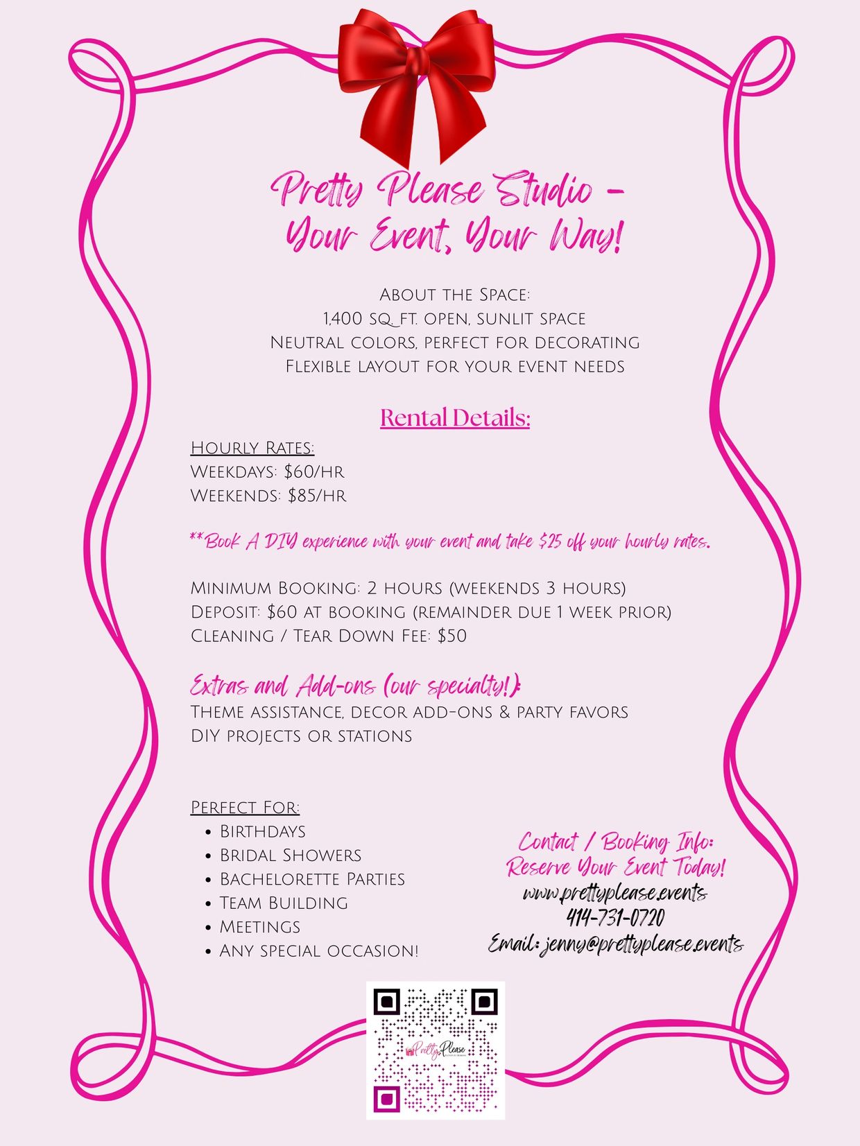 *If you book a DIY with your event or meeting, there is no charge for studio rental